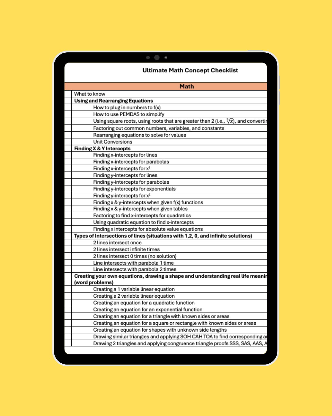 This checklist contains a comprehensive list of all the different concepts and questions they will ask you in the SAT math section! Definitely check it out!